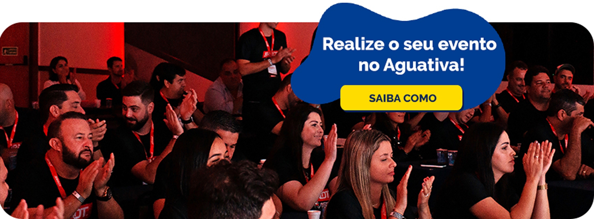 Para começar, um bom evento precisa contar com uma infraestrutura de qualidade. No Aguativa, você encontra instalações modernas que farão toda a diferença. Como por exemplo, salões e salas climatizadas, equipamentos de alta tecnologia, acesso rápido à internet e, claro, todo o suporte da equipe do Aguativa.