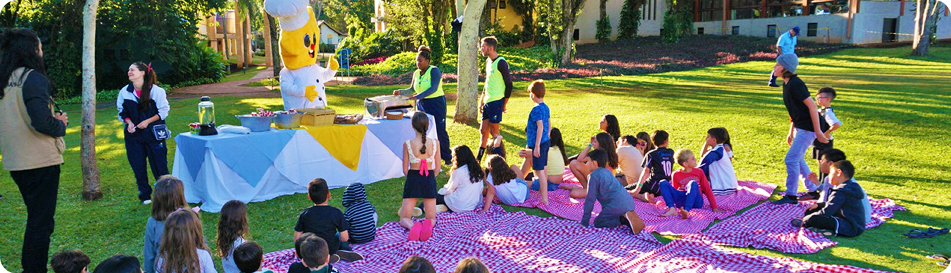 Crianças amam piqueniques. Com tudo colorido e animado, então, vai ser só sucesso! Melhor ainda se for em um local seguro, confortável e inesquecível.
