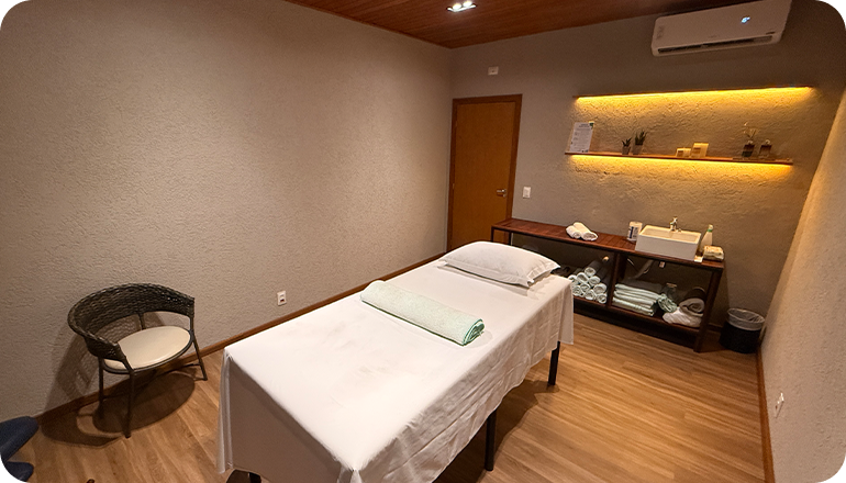 Você também pode aproveitar uma deliciosa massagem com um de nossos massoterapeutas. As opções são: terapêutica, relaxante, modeladora, pedras quentes, shiatsu, drenagem linfática e até gomage. Atividades de relaxamento com custo extra.