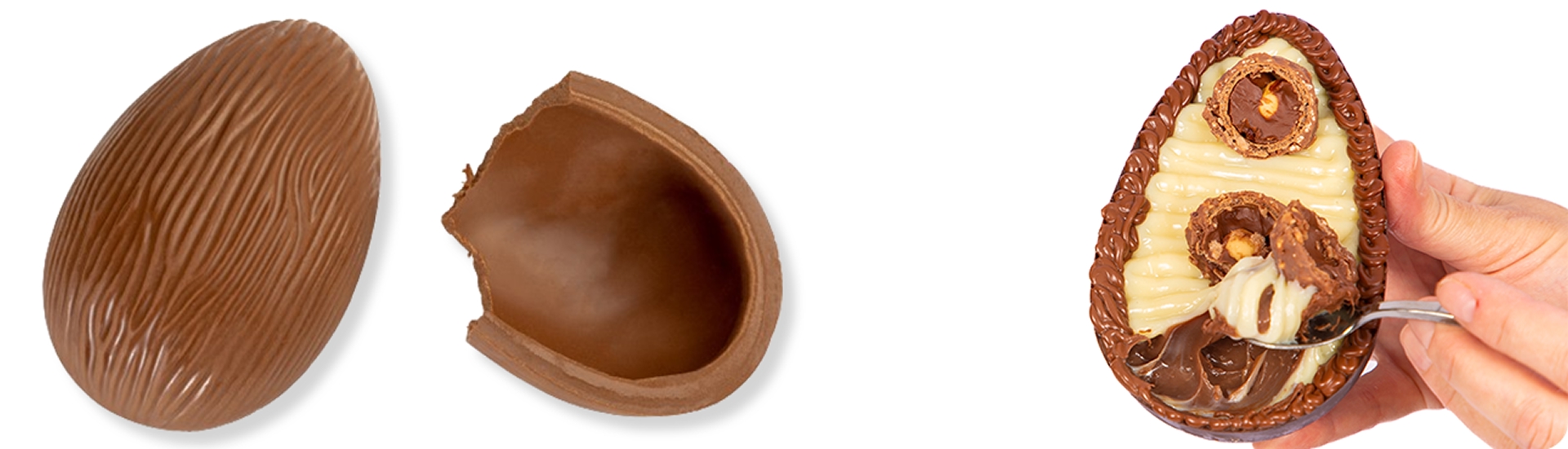 Atualmente, temos muitas versões de ovos de Páscoa, mas podemos dividir eles entre ovos artesanais e os tradicionais. Os tradicionais são aqueles industrializados e possuem um preço mais acessível, por serem feitos em grande escala. Eles não deixam de ser gostosos, mas não têm nenhum diferencial. Já os artesanais, são ovos feitos de maneira manual e costumam ser um pouco mais caros, por conta da mão de obra e dos preços dos ingredientes que podem ser usados. Um exemplo do ovo artesanal é o ovo de Páscoa de colher. Esse tipo tem uma casca de chocolate simples e pode ter diversos tipos de recheios e decorações, variando de acordo com o gosto de cada um.