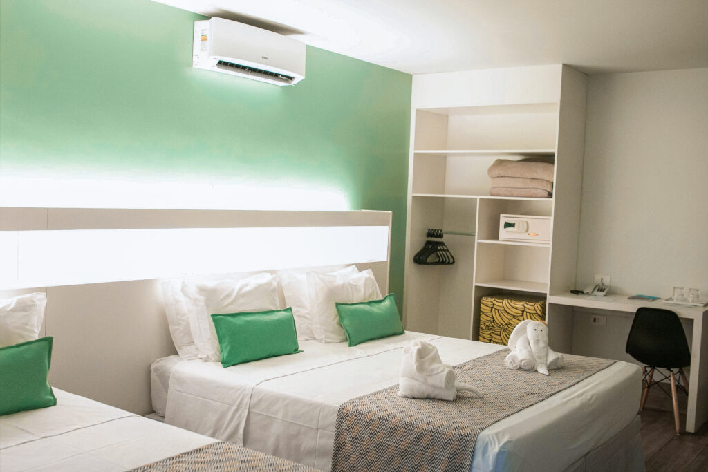 Localizado na charmosa e elegante Vila Antúrios, o Chalé foi construído em estilo casa térrea, possui varanda, uma moderna decoração e acomodam até três pessoas. Você tem à disposição TV a cabo, frigobar, bancada, ar-condicionado, cofre, internet Wi-Fi, telefone, cama box para 2 pessoas e sofá-cama para 1 pessoa. Nos banheiros privativos, você encontrará secador de cabelos, além de duchas e torneiras abastecidas com água mineral hipotermal. As tomadas são 127v. Distância aproximada de 100m do Restaurante e 190m do Complexo Aquático.